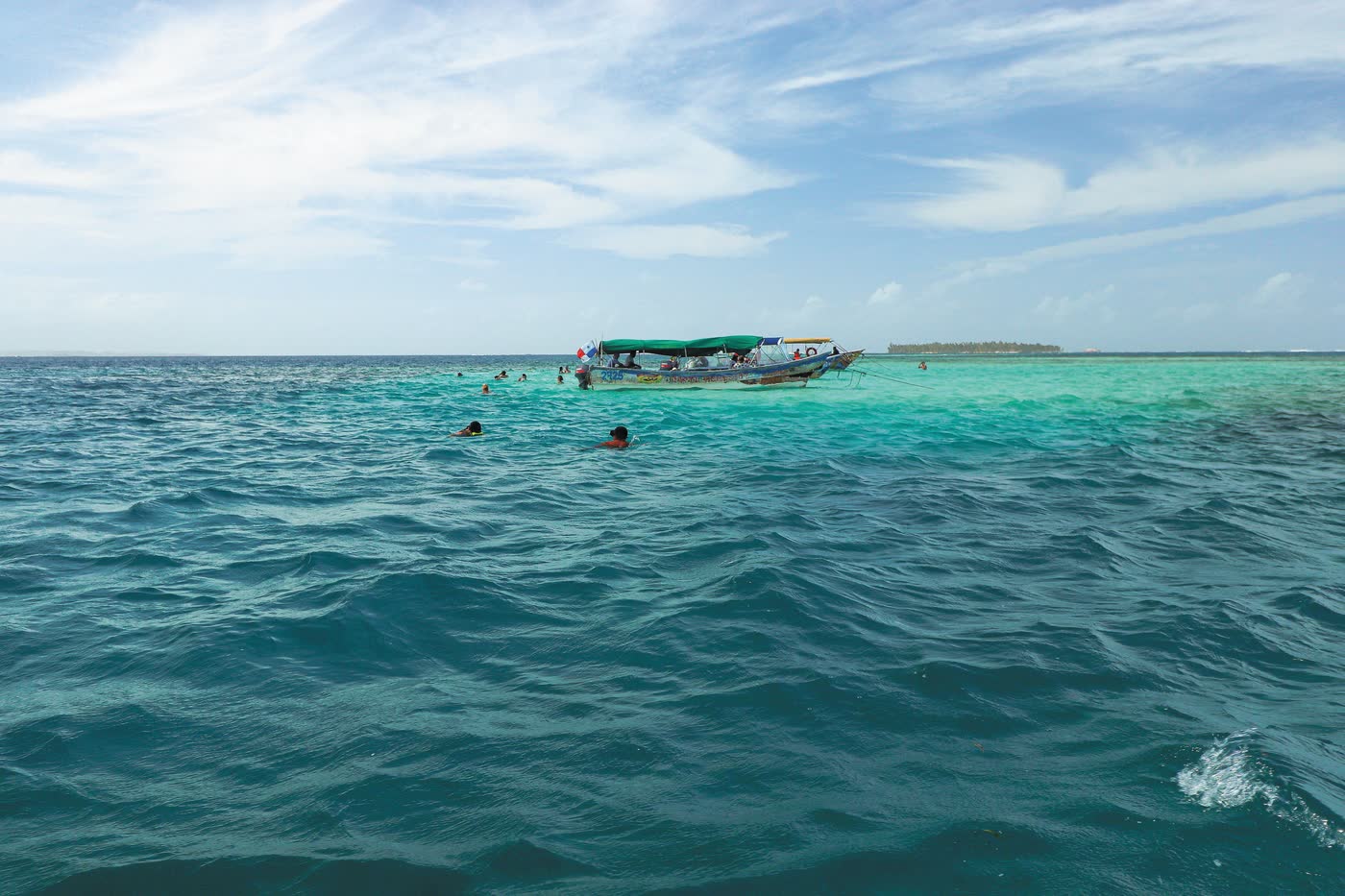 At Carti Port you take a boat to the islands in a shared journey (maximum of 12 people) with a duration that varies according to the distance of the island are heading to and the weather.